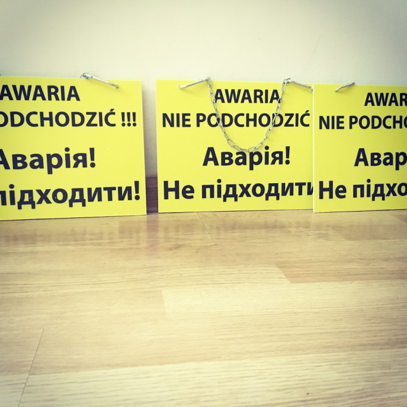 Tabliczka ostrzegawcza BHP w różnych językach i formatach,
